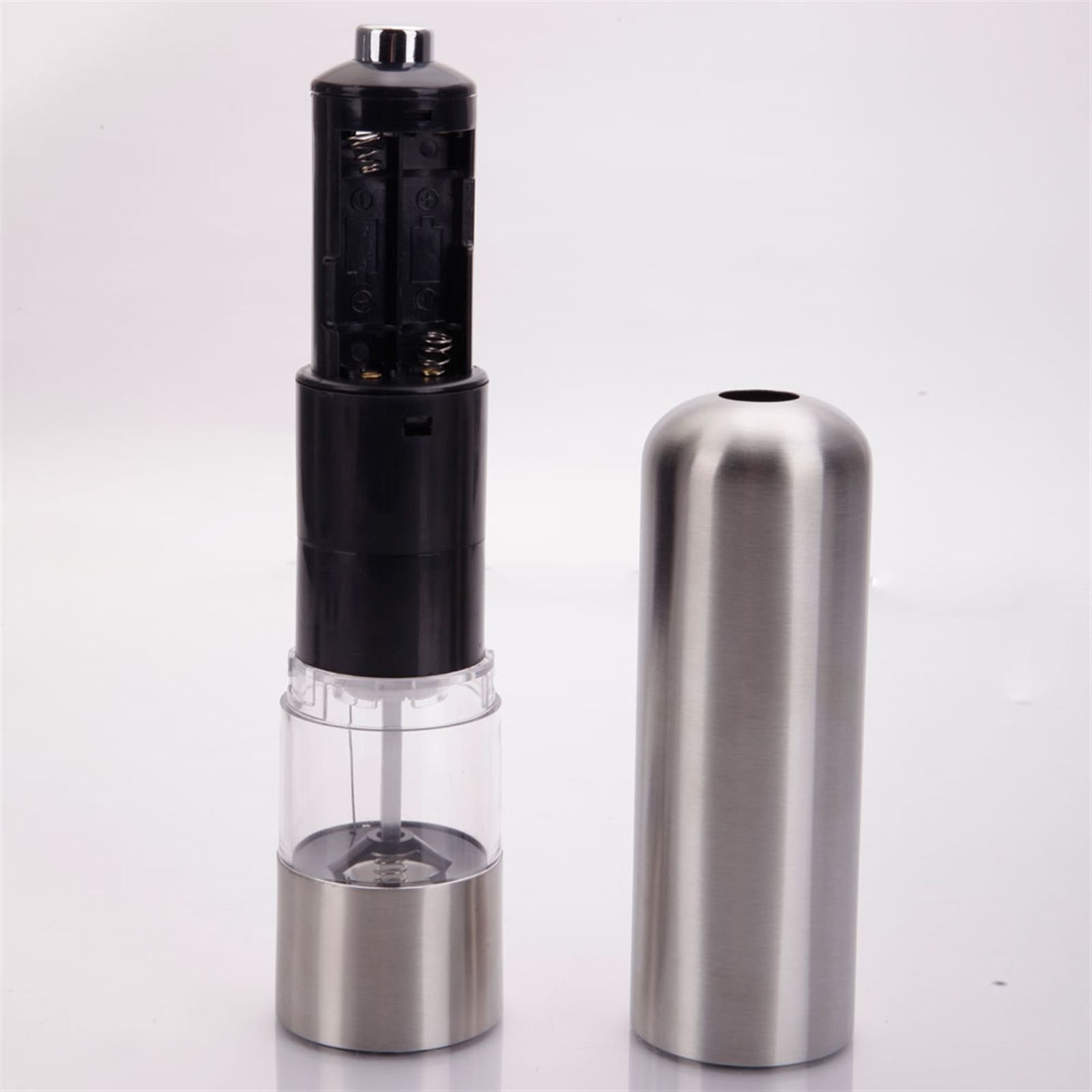 1. Powered by batteries; grind salt and pepper automatically